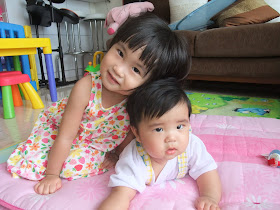 Jerlene finally hit 11kg this month. Maybe her small build makes her appears much more adorable. She now sings more than she talks. She sings everywhere she goes......to the supermarket, to the shopping mall, in a restaurant and even in a clinic. And she not only sings, she sings very LOUDLY which attracted all the attention. There were a few occasions whereby the passerby sang along with her. I've lost count of the number of songs that she now knows. It's definitely more than 50, and not including those that she "composed" herself. Yes, she sometimes will modify the song lyrics with words that came into her mind. Damn funny..... :-)